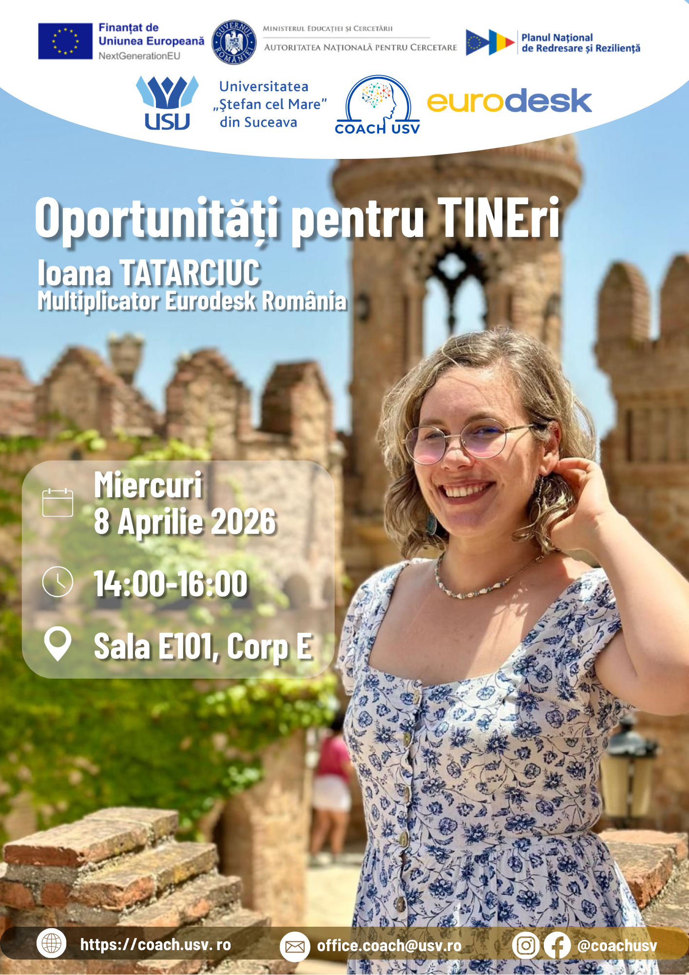 Centrul COACH USV vă invită să participați la activitățile organizate în luna APRILIE 2026, dedicate dezvoltării personale și profesionale a studenților, doctoranzilor, cercetătorilor și cadrelor didactice, din Regiunea de NE a României.
